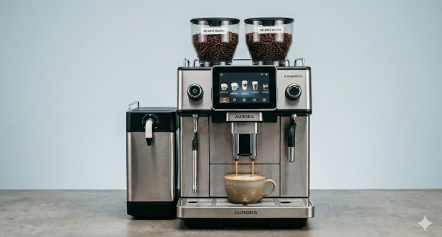 hält ein Kaffeevollautomat