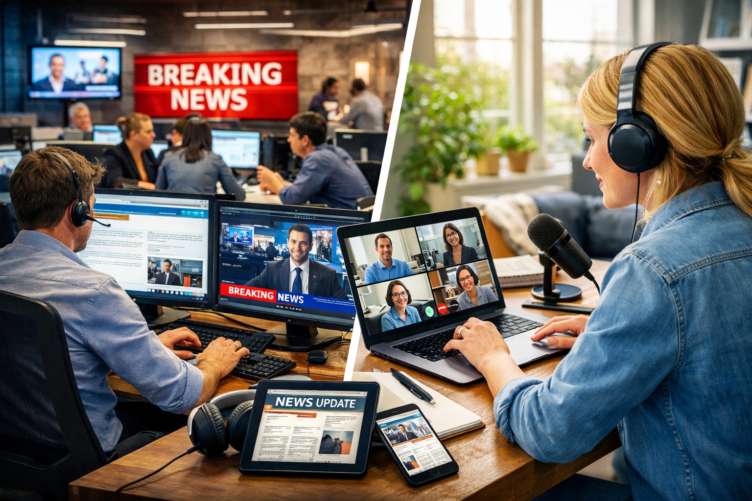 Darüber hinaus entstehen auch neue Formen der Zusammenarbeit. Online-Redaktionen arbeiten häufig eng mit Video- und Social-Media-Teams zusammen. Die Inhalte werden parallel für verschiedene Plattformen aufbereitet. Ein Thema erscheint so beispielsweise als Artikel, Video, Podcast und Social-Media-Beitrag.